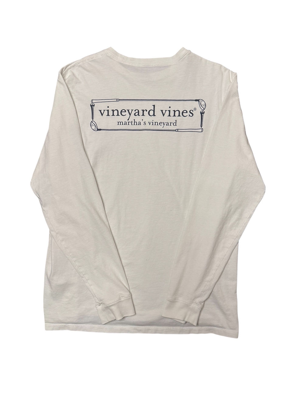 Vineyard Vines White Longsleeve, Navy Blue Whale